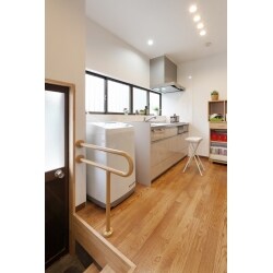 洗濯機の位置をキッチン横に変更、手摺と段を付け出入りしやすい勝手口をご提案