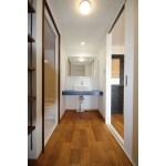 洗面脱衣所には、タオル類がたっぷり収納できる可動棚を作りました。