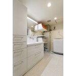 これから先にモノが増え事にも充分対応出来る45cmのトールキャビネットと、100cm間口の大きなスライド収納のTOTOオクターブは白で統一して、限られた空間でも広々と見せてくれます。
