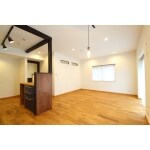 古木調の梁と明かり窓障子が印象的なリビング