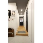グリーンのクロスとミラーで明るくなった廊下