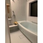 最新式のユニットバスにリフォーム致しました。 浴槽は人工大理石で、お掃除もしやすいです。また、浴槽の形は「クレイドル浴槽」と言って、浴槽内に肘掛けがなく、ゆりかご状の形状をした浴槽です。広くゆったりと浴槽に浸れるようにデザインされています。