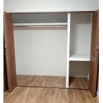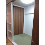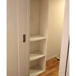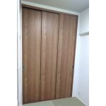 もともとあった押入を利用した収納です。出し入れがしやすいように引き違い扉を天井までの3枚引き戸(フラッシュタイプ)に交換しました。既存の引き違い以上に開口幅が広がりました。