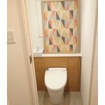 ブラックの壁紙が印象的な”和モダン”のトイレ