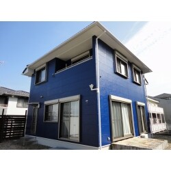 土壁風の外壁を軒天は白く外壁は真っ青にしたいとの要望がありました。