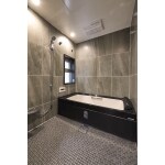 ホテルライクな高級感を演出できる、リクシルのスパージュをお選びになりました。壁面と床はグレーでまとめて、浴槽はブラックで引き締め、上質で落ち着いた空間を創りあげました。