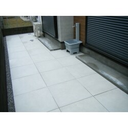 既存の白砂利を撤去し、コンクリートの上にタイル貼りで仕上げました。 白砂利も素敵でしたが、コンクリートタイル仕上げにする事で、よりお手入れが楽になったかと思います。
