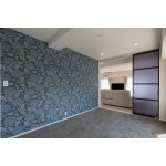 花柄が印象的な「Kingston Lacy」というリリカラのクロスをアクセントに、ブルーがベースで深い海の色をイメージさせ、日常を忘れてリラックスできる寝室となりました。