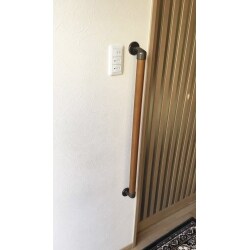 生活動線に手すりを設置させていただきました。 屋内の手すりはもともとある建具に合わせ木目の優しいお色に。木質なので手触りも良いです。 屋外には丈夫なアルミ製の手すりを取付けました。