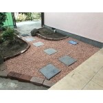 踏み石や瓦の砕石で明るくしました。