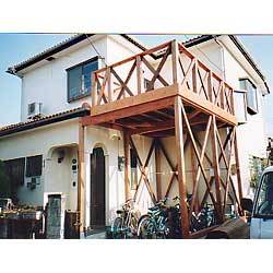 床材はベランダ用のデッキ材を使用しなるべく下に水が落ちないようにしました。