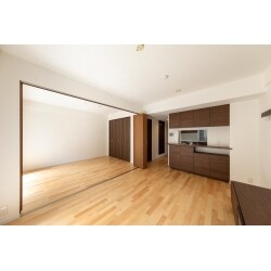 和室を洋室にリフォームし、間仕切開閉折戸を採用したことにより、開放感あるリビング・ダイニングをご提案しました。
