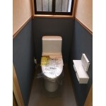 洋式トイレに変更し、床はクッションフロア、壁はクロス張りで腰壁部分で貼り分けしました。