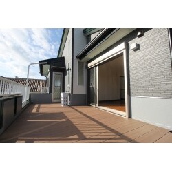既存ベランダに全面にウッドデッキを敷き込みました。 室内とベランダの高低差を最小限に抑えて、床が繋がっているイメージを提案しました。