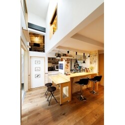 お子様の独立後、ロフトの子ども部屋をなくし広い吹き抜けにできるよう施工しました。 愛猫のため、吹き抜けを一周できるキャットウォークを新設。 老後を見据えたバリアフリーはもちろん、水廻りへのアクセスにも工夫をしました。 照明もこだわり、奥様ご希望のカフェのような空間になりました。