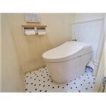 築30年越しのマンションリフォーム。古くなった水回りは一新しました。 トイレはタンクのないトイレ(TOTO ネオレスト)にすることでトイレ内のスペースを確保しました。