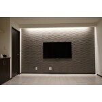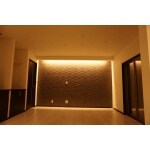 和室とダイニングの壁を取り払い、ワンフロアにし、生活しやすい間取りをご提案しました。抜けない柱を隠すために、ルーバーを使用しました。ルーバーにより、採光もとれ、壁と違って圧迫感も感じません。 リビングの壁には自然素材のエコカラットの使用をおすすめしました。エコカラットはお部屋の調湿効果があり、アクセントにもなります。