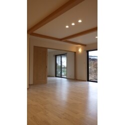 無垢床(赤松)と大梁で暖か広々のリビングダイニング