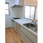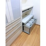 キッチンは、お客様がショールームへ行ってお決めになりました。機能が充実した、最新型キッチンです。家電収納も同じもので揃えています。