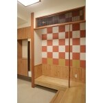 古い欄間や障子を再利用してインテリアデザインの一部とした。 外観は廻りの雰囲気に溶け込むよう、町家をイメージしたデザインとした。