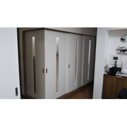 襖からプリント合板の引き戸に交換しました。また和室が暗いとのことでしたので、閉め切ってもリビングからの光が入るように、スリット入りのの引き戸をご提案させていただきました。