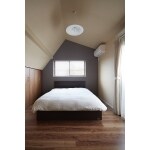 3階主寝室。各階ともに、既存の窓にはインナーサッシを、新たに設けた窓には断熱性の高いサッシを採用した。収納は、内部の間仕切りを撤去し大容量に。