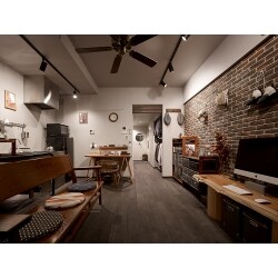 セカンドハウスとして購入したワンルームマンションを、素材の質感を活かした空間へと一新したお客様。レンガ調の内装材をアクセントに、ラフな仕上げの床材やステンレスのキッチンと一つひとつにお客様のこだわりが詰まっています。ポイントは、屋根の一角に設けた就寝スペースです。床の高さをかえることで、ゆるやかなエリア分けを図るとともに、ワンルーム空間に変化を生み出しています。