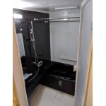 ショールームにて浴槽を黒を基調としたカッコイイ色を提案。 器具面のアクセントパネルも黒を基調としより大人の雰囲気のある浴室を実現しました。