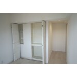 廊下側に収納新設のため壁を造作。クローゼットは既存利用で折れ戸のみ取替え。