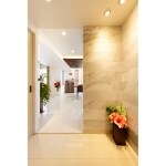 エキゾチックなタイルを壁に貼って、涼しげな玄関に。