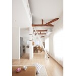 4LDKの住まいを、玄関もLDKも別の分離型の2世帯住宅にリフォームしました。玄関は2等分にして、1階の約半分をゆったりとしたサニタリーをもつお母さまの住まいに。2階の個室をつなげてつくったお嬢様世帯のLDKは、上部の屋根裏収納を解体して、吹き抜けロフトを設けました。「子供たちが走りまわる音がしないと、元気がないと母も心配してくれます。壁や床を通じて、お互いの気配が感じられるのがいいですね」と奥様。各階の断熱改修も行い、あたたかな暮らしを楽しまれています。