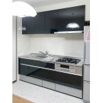 キッチン本体は特にこだわりはないがレンジフードはスリムで清掃性がいいものに取替たい。 全て引き出し収納で収納力をアップしたい。