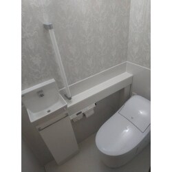 タンク手洗いは水が飛び散るので手洗い器新設。同時に、タンクレストイレにしたい。汚れにくく、掃除が楽な様にしたい。