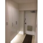 玄関ドアもホワイトカラーに統一することでより明るく広く見える空間に変わりました。ポストはグレーを採用、オシャレなアクセントになります。お手入れしやすい床素材を採用することでお客様のご希望に沿う玄関に変わりました。