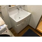 洗面化粧台はデッキ水栓タイプを元々使用されていましたが、交換したのは壁だし水栓タイプになり清掃がしやすくなりました。
