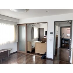 寝室とリビングを隔てている壁を解体し、そこに引き戸を新設し行き来しやすいように提案しました。 ロールカーテン遮光性のある既存と同じようなものを提案しました。