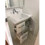床も張替え、清潔感を出しました。洗面台は引き出しタイプを採用し収納力も格段に上がりました。