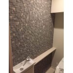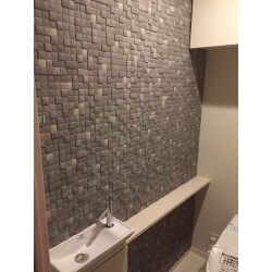 タイル交換とシューズボックス面材シート施工