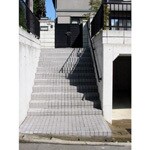 - コンクリートからタイル貼りの階段へ