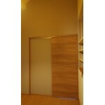 2階の部屋の間仕切り壁工事をいたしました。 階段上の腰壁の先から、壁を設置しました。 ベランダと壁の間(奥)は収納スペースを設け、腰壁の上には棚の高さを自由に変えられる可動棚を設置しました。