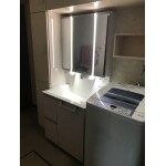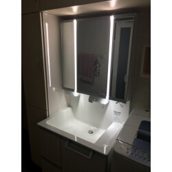 鏡の裏も収納になっており、まわりの小物をスッキリできました。