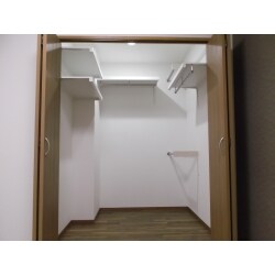 洋室のクローゼットと一体になった収納たっぷりなウォークインクローゼットです。