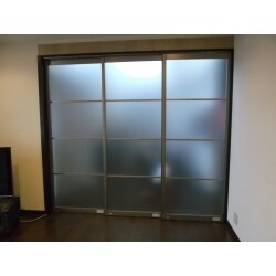 リビングが見えなくならないように半透明の全面パネルの3枚扉にしました。