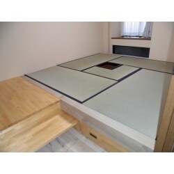 畳の下に、お茶の道具等を収納できるようにしました。 4.5帖の茶室と前室のような板貼部分を設けました。 板貼部分も収納できるようにし、その前にあったクローゼットもそのまま使えるようにしました。