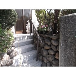 階段の高さと幅を一定にして昇りやすくして、手摺を取付けました。