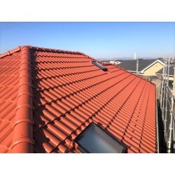 モニエル瓦の屋根材表面のスラリー層を強化しながら塗装することが出来ます。上塗りの際の塗料も高耐久性のものを使用することをオススメします。