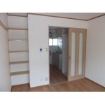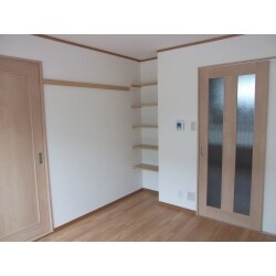 押入をいろいろな形のクローゼットに、部屋の片隅には、本棚を設置し、家具のいらない、部屋を広く使える洋室にしました。