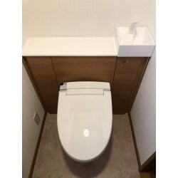 タンク内蔵のキャビネットには、トイレットペーパーや掃除用具なども収納可能。スッキリと片付いた空間を演出します。 また、座っていた時間によって大と小を自動で切り替えるフルオート洗浄や、脱臭機能など、高い利便性を誇るトイレです。