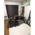 黒い壁紙が白くなっただけで、室内のイメージがガラリと変わりました。 高級感を演出するために、部屋の中央にあった畳も撤去し、大理石調のクッションフロアに貼り替えています。 お客様の個性がひかる空間となりました。