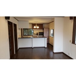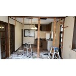 L型キッチンでリビングに背を向けての家事なので孤立感がある事を解消したい。 キッチンとリビングが壁で仕切られていてそれぞれが狭い。 この間仕切り壁を撤去出来ないか